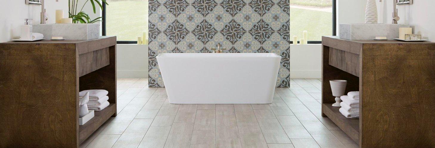 Vinyl flooring is a good choice because it is easy to maintain and water resistant.